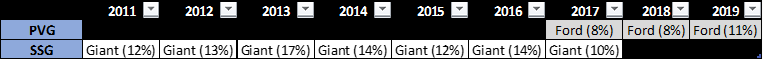 The concentration of Ford sales can be attributed to Ford Raptor sales, while the past concentration of Giant sales can be explained by the fact that Giant acts as a contract manufacturer for other bike OEMs, meaning that all of those SSG sales were not exclusive to Giant-branded bikes.