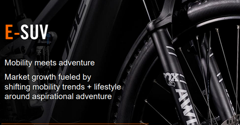 The adoption of e-bikes has been and is expected to continue to be one of the primary growth drivers of the mountain bike industry, where participants have greatly benefited from the emerging segments of electric mountain bikes, E-SUVs (electric sport utility vehicles) and gravel bikes.