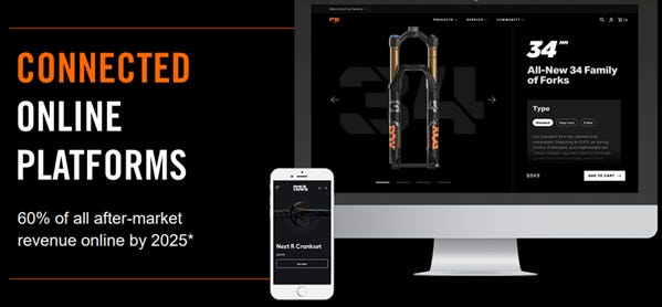 For example, currently, 40% of SSG aftermarket sales are sold through retailers with online storefronts, which is anticipated to grow to 60% by 2025 (either through Fox’s own site or through its retailers).