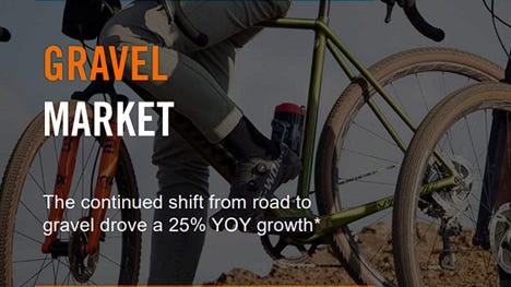 Finally, the gravel market has recently seen 25% YoY growth in NA. This growth is estimated to come from road riders migrating into off-road settings and it is a relatively new category. These bikes usually have mountain bike suspensions while maintaining the speed and agility of road bikes.